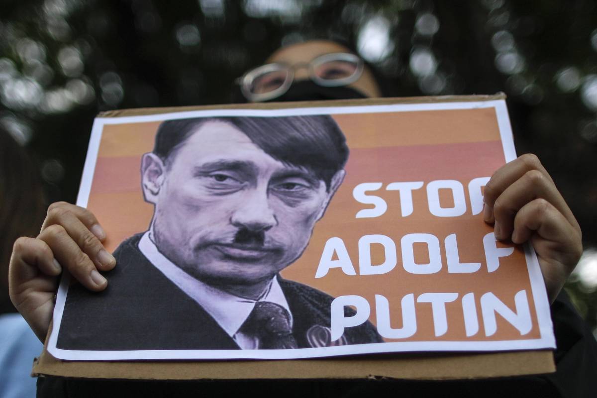 Essendo assodato che Hitler poteva essere fermato solo tramite la guerra l’identificazione di Putin con Hitler non lascia alternative: questa guerra è “giusta” o “etica” perché è come l’altra.